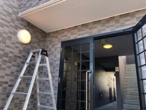 マンション共用部の廊下や階段についている照明器具の取替工事です。
